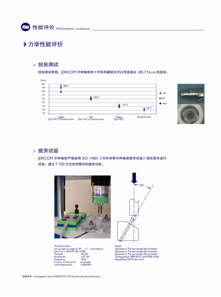 疲勞測試結(jié)果:WEGO種植體嚴(yán)格按照ISO-14801《牙科學(xué)骨內(nèi)種植體疲勞試驗(yàn)》測試要求進(jìn)行試驗(yàn),通過了500萬次負(fù)荷循環(huán)的疲勞試驗(yàn)。